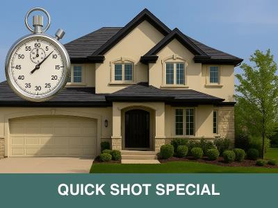 QUICK SHOT PHOTOS: The Quick Shot is for customers that want the most bang for their buck and do not mind letting us do our thing. It is a fast-paced photo session offered at a discounted rate. We photograph the core images typically needed for a residential real estate listing. Homes are shot as is in the most efficient manner entirely at our discretion with no input from the homeowner or agent. All of the interior and exterior image compositions are chosen exclusively by us. Client grants us full creative control. The Quick Shot cannot be scheduled for unattended homes over 5000 square feet. The homeowner or agent must be present for homes over 5000 square feet.The home must be clean and photo ready by your appointment. If your home is messy and cluttered, it will be shot messy and cluttered. Prior to booking, please contact us for details so that we may answer any questions.